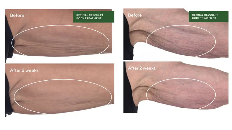 Like a HIIT workout meets shapewear, this targeted body treatment, powered by retinal encapsulation technology, dramatically lifts, firms, and tightens sagging, crepey skin and