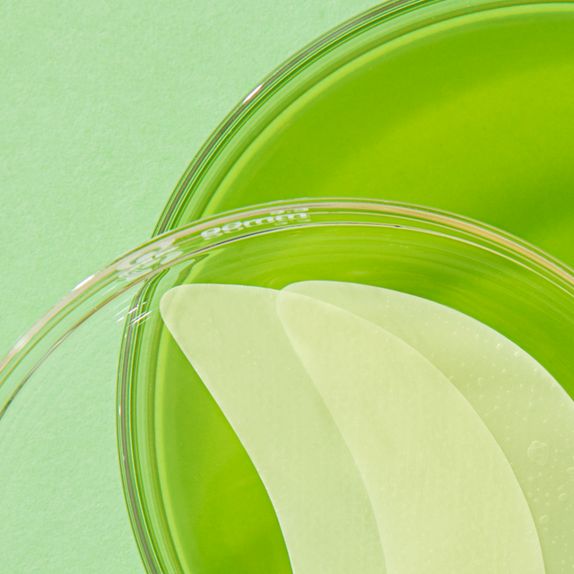3. Peel off outer blue mesh starting at the outer corner, then gently pat to smooth. After 15 minutes, peel and reveal a refreshed eye area. Discard patches, then pat in any remaining product.